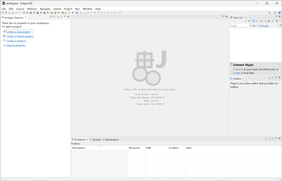그럼 이제 최종적으로 이클립스가 실행된 화면을 보실 수 있습니다.