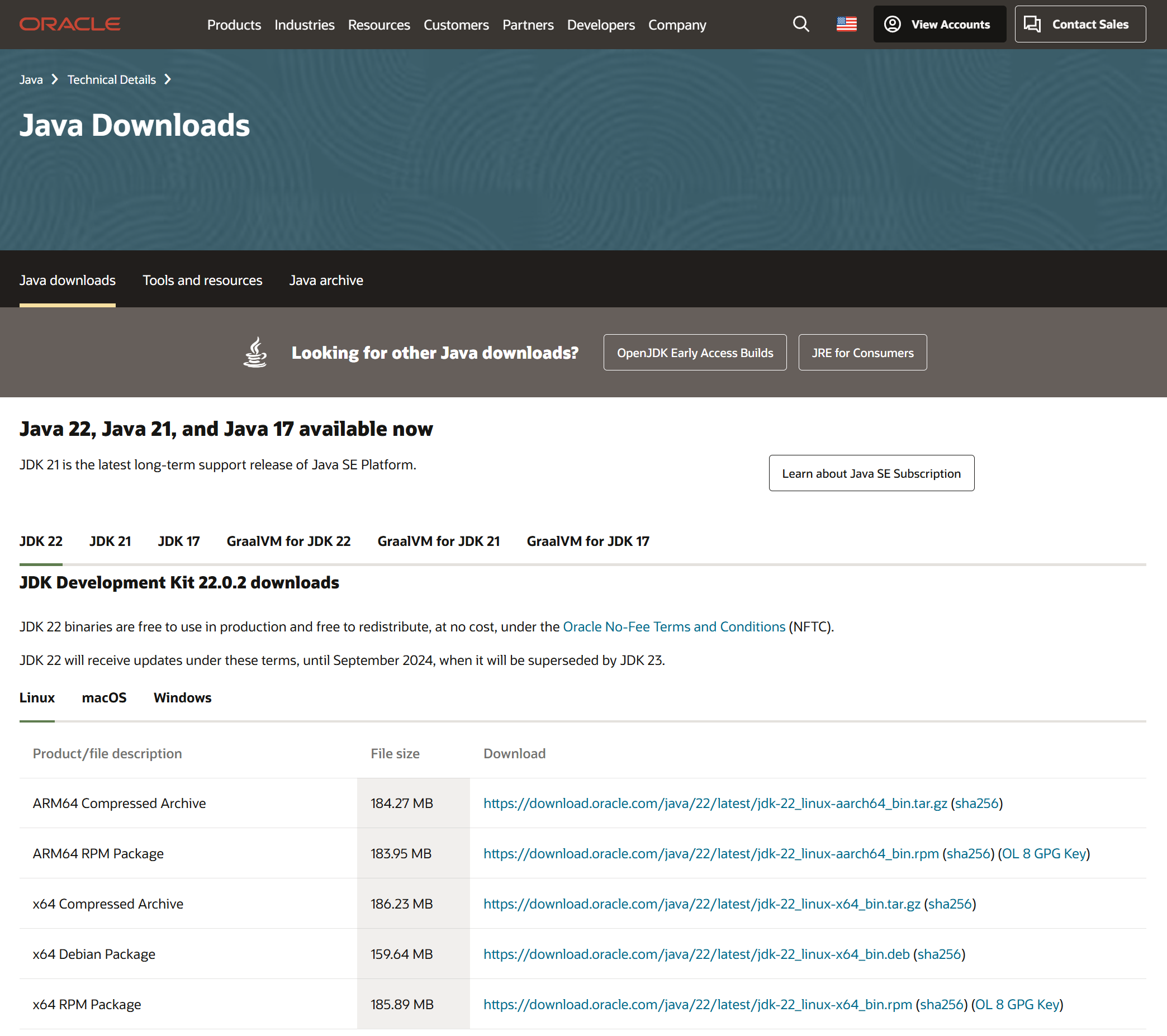 2024년 7월 기준 최신 버전은 22버전이네요. 기업이나, 프로젝트에서 버전 22로 개발하는 경우보다는 이전 버전으로 개발된 경우들이 훨씬 많습니다만, 보통 최신 버전으로 다운로드 받아 설치하면 하위 버전으로 개발이 가능합니다.