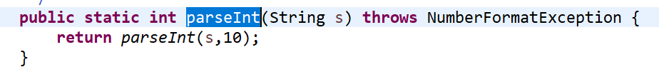 이전 예제들에서 보았던 Integer.parseInt() 라는 메서드를 확인해볼까요. 이클립스에서 ctrl+클릭해보면 해당 메서드로 이동되며, 내용을 확인할 수 있습니다.